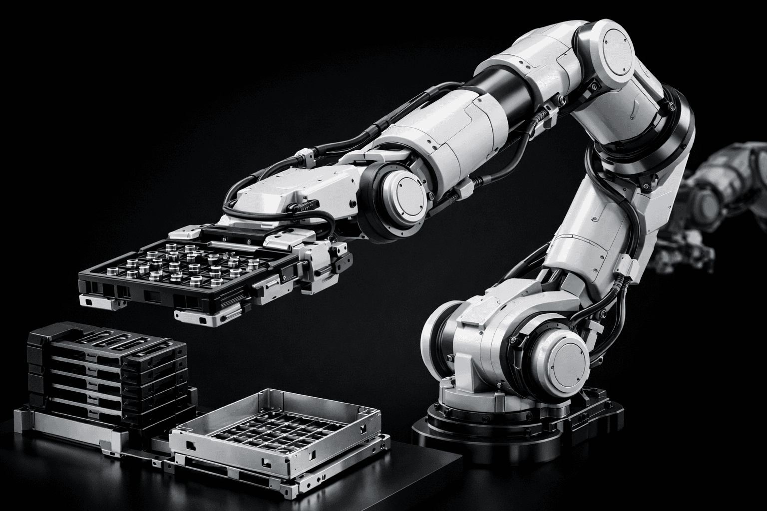Schlüsselfertige Zuführung und Entnahme für Trays, Magazine und Kassetten. Delta-Kinematik bis Schwerlast-Handling.