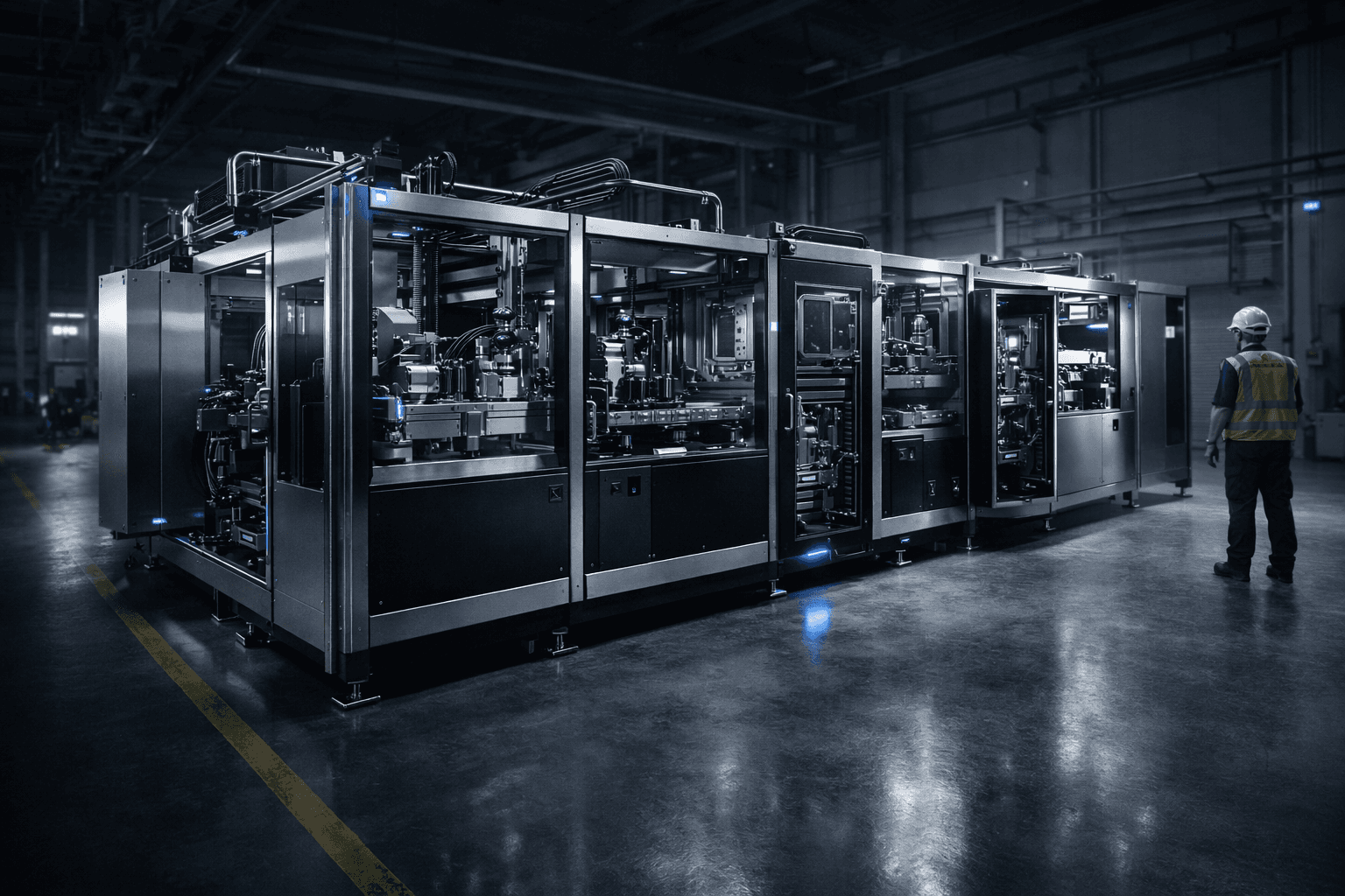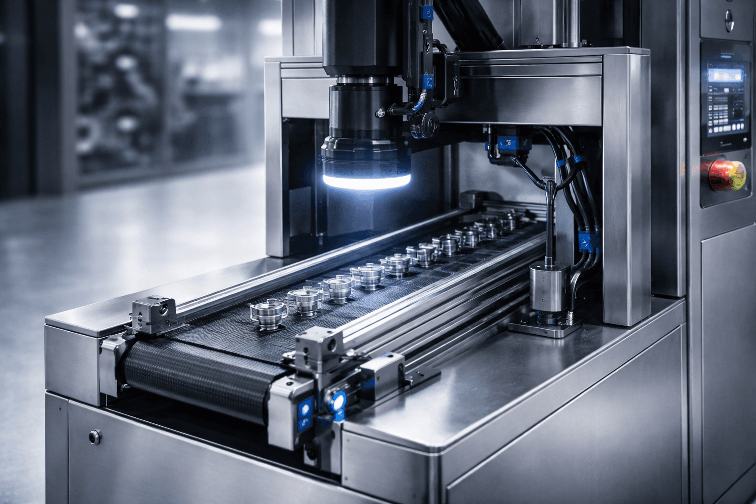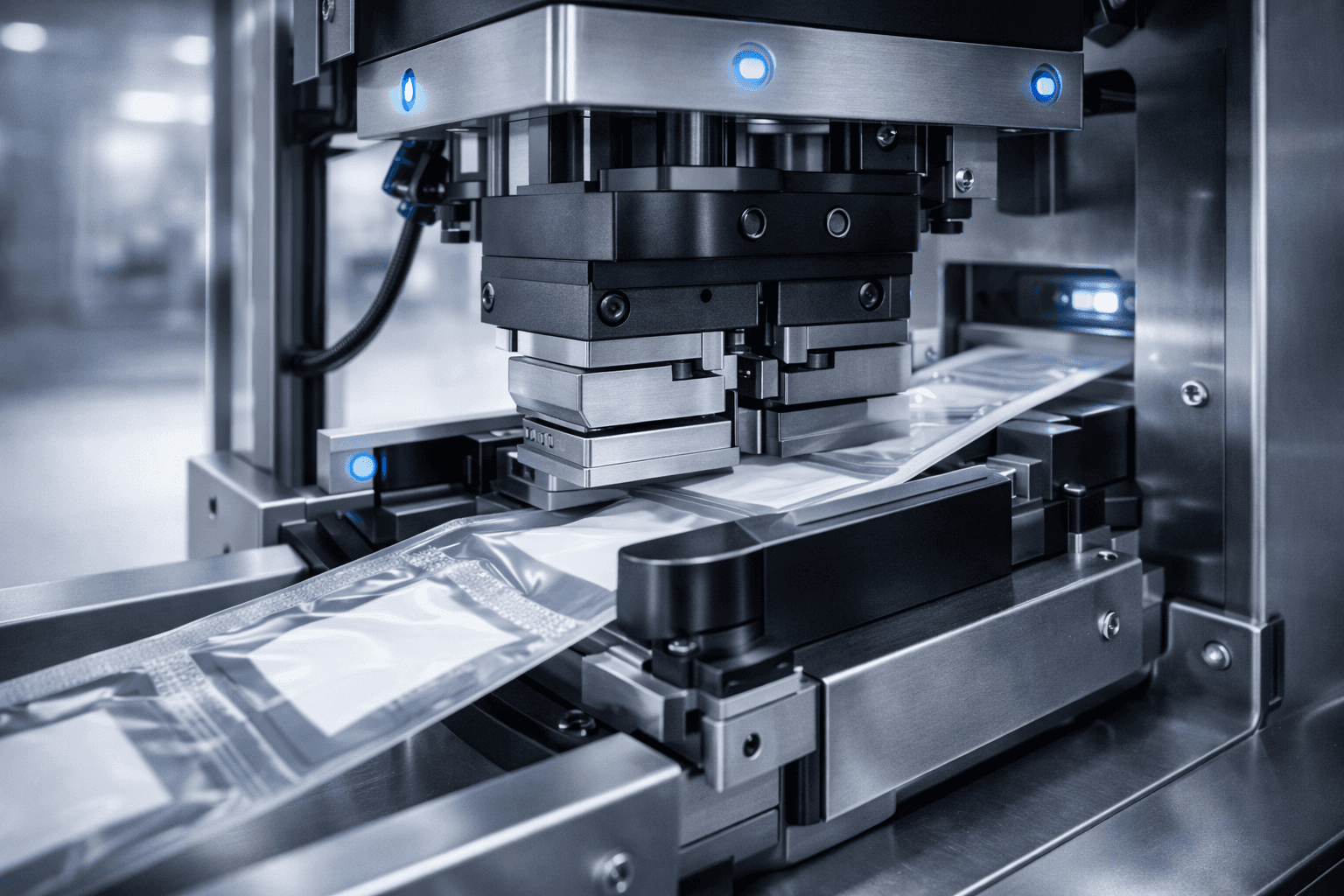 Reinraum-Siegeltechnik für pharmazeutische Verpackungsprozesse. Kompakt, validierbar, thermisch stabil.
