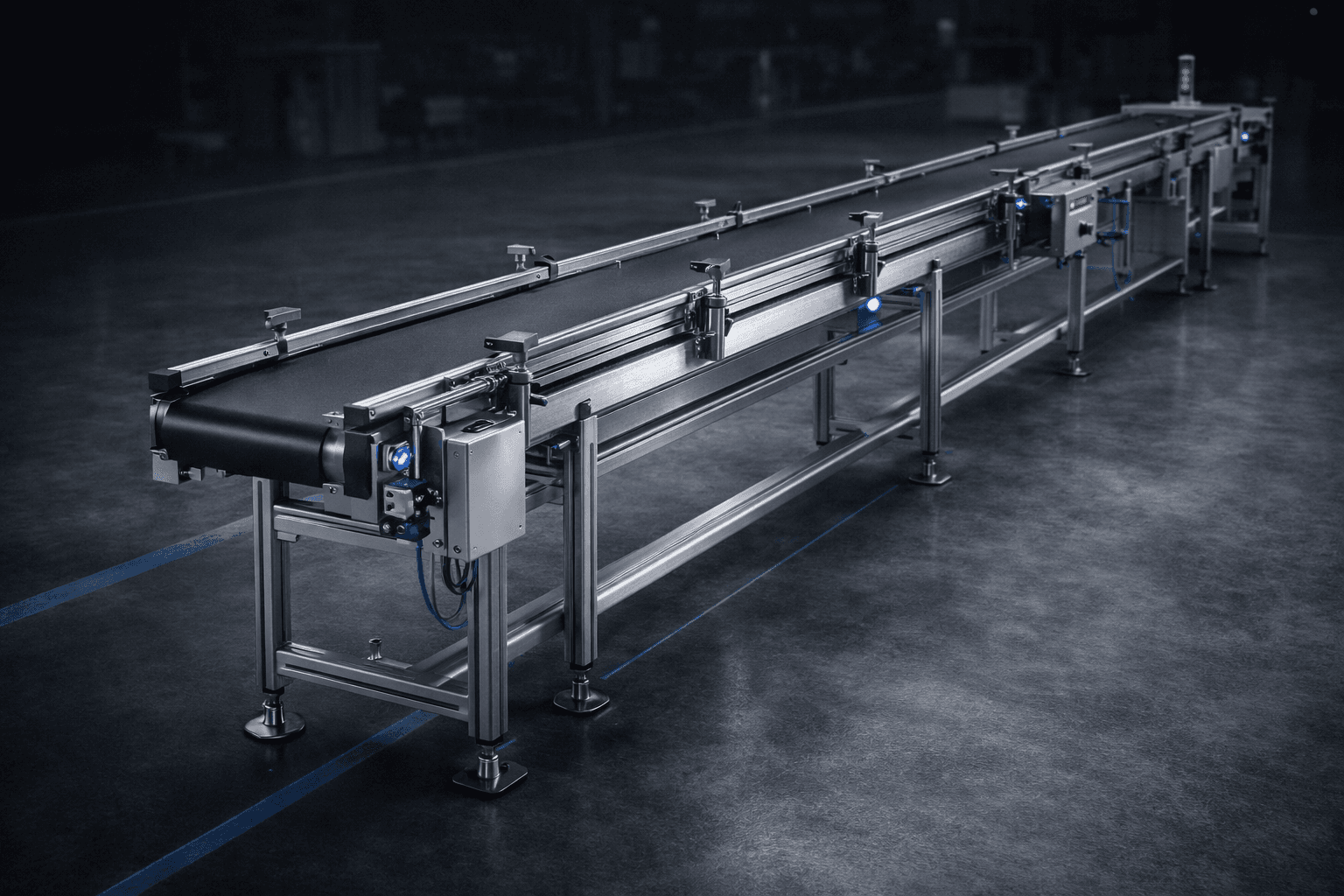 Modulare Inline- und Outline-Förderstrecken mit integrierten Wiege-, Hub- und Drehstationen. Pharma-DNA in jeder Komponente.