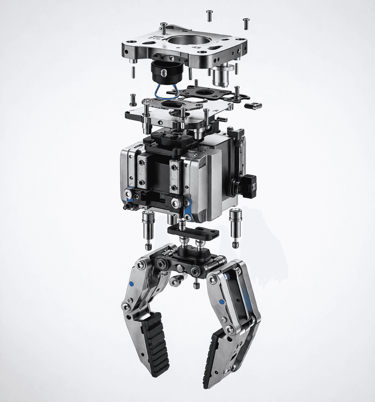 Maßgeschneiderte End-of-Arm Tooling Systeme – vom Pralinengreifer bis zum Schwerlast-Palettierer. FDA-konform.